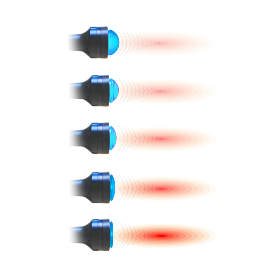波源头磁盘直径仅63mm,轻巧灵活,易于在手指、足趾等狭小部位精准定位。可通过调节水囊冲盈度对治疗深度进行调节,其最深有效治疗深度可达130mm,焦点直径最小为15mm,既能精准聚焦深部小病灶,又能兼顾周边组织,实现“指哪打哪”。